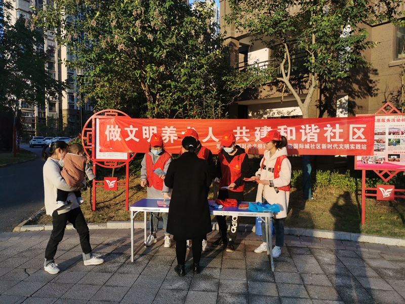 志愿者向社區(qū)群眾宣傳文明養(yǎng)犬、《滁州市文明行為促進條例》、《滁州文明16條》(2.0版)、《滁州市民公約》等內容,引導群眾駕乘電動車佩戴頭盔,厲行勤儉節(jié)約,反對鋪張浪費,養(yǎng)成文明健康綠色環(huán)保的生活方式,樹立文明新風尚,爭做文明有禮滁州人。