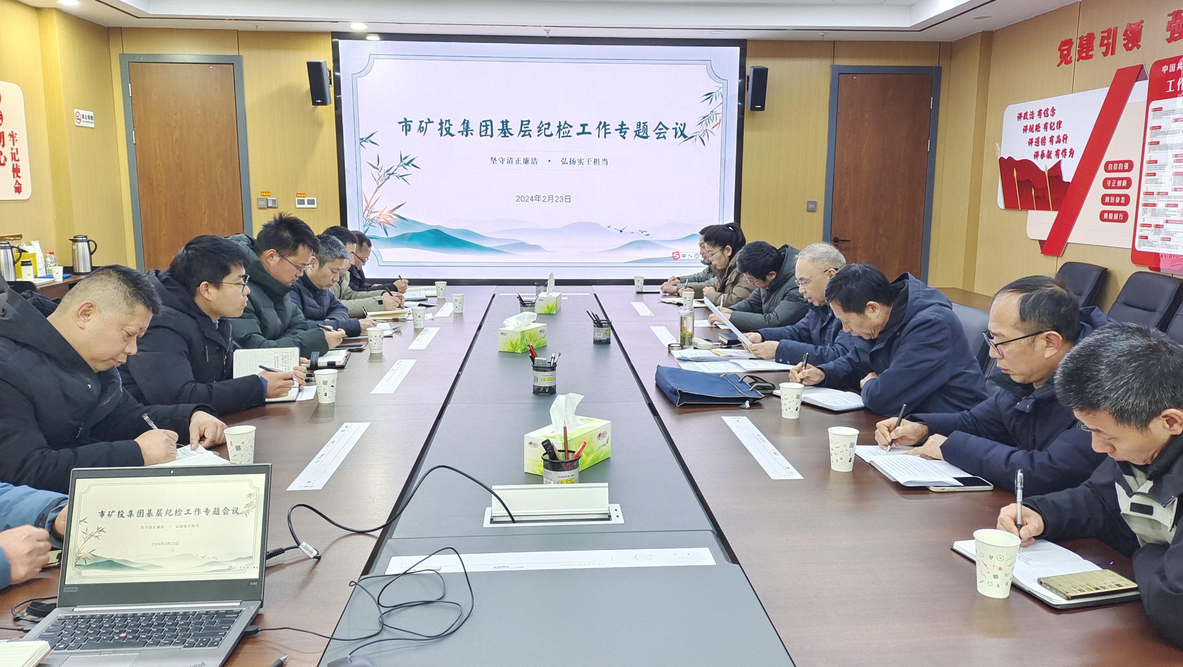 春節(jié)假期結(jié)束后第一周,各項復(fù)工復(fù)產(chǎn)工作有序推進,駐市礦投集團紀檢監(jiān)察組吹響節(jié)后“監(jiān)督哨”,組織召開基層紀檢工作專題會議。市礦投集團黨委委員、駐市礦投集團紀檢監(jiān)察組組長芮金保主持會議,瑯琊山礦業(yè)有限公司紀委委員、各黨支部紀檢委員參加會議。